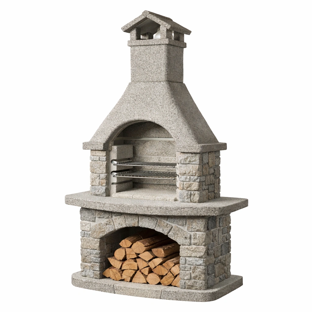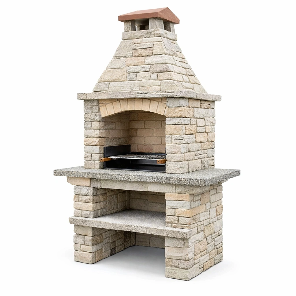 Barbacoa de piedra y ladrillo refractario para exterior