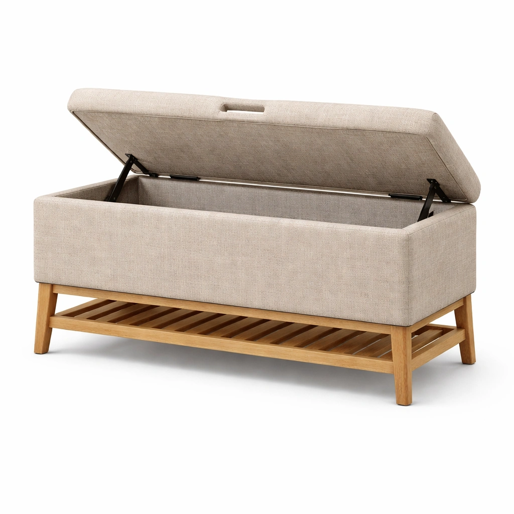 Banco con almacenamiento de roble y poliéster beige 120x40x50 cm