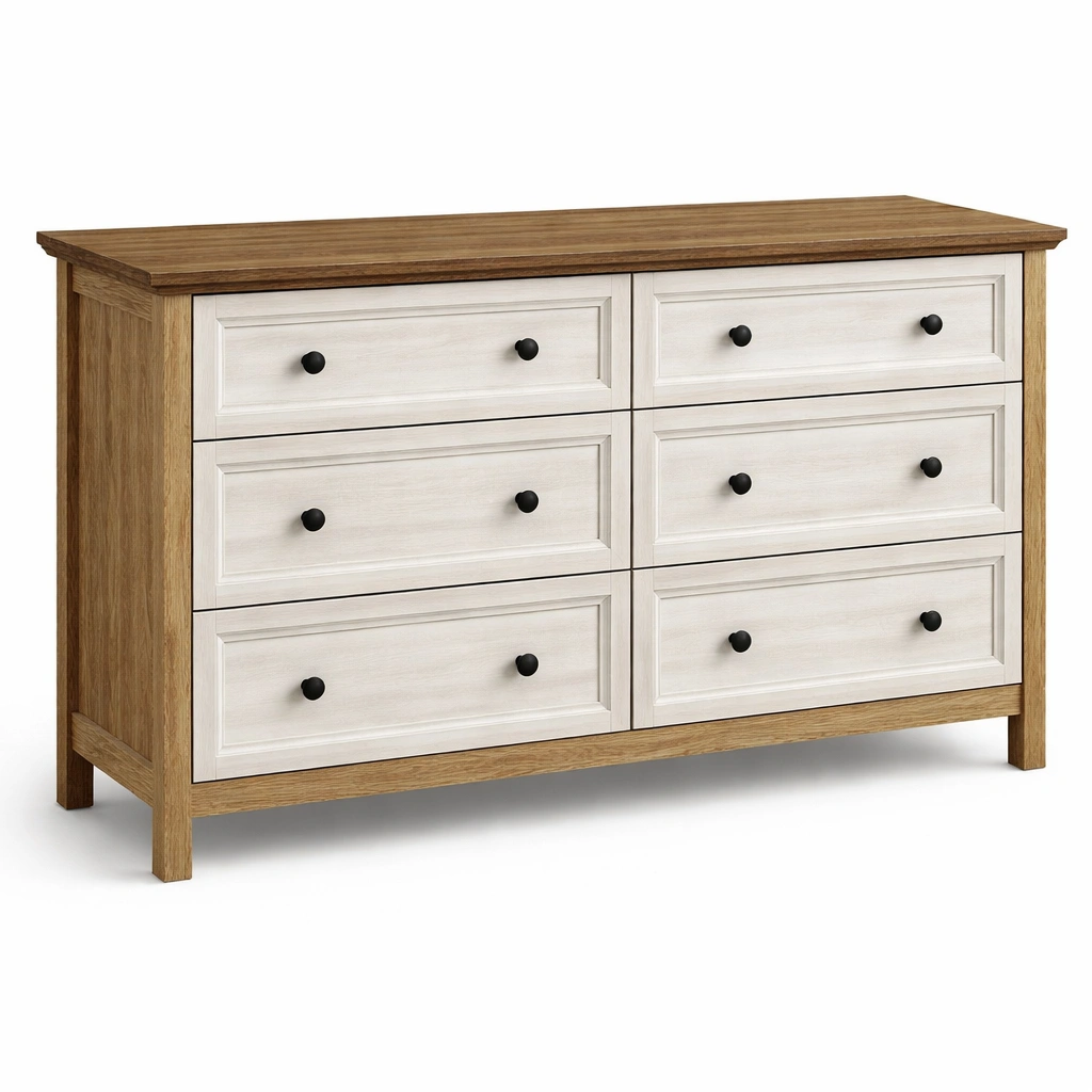 La cómoda ofrece amplio espacio de almacenamiento con seis cajones.